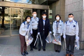 Since 2009, employees at our Tokyo Branch have been participating in the Chuo-ku Clean Day cleanup activities held in Chuo-ku, Tokyo, on the 10th of every month. We participate in these activities in collaboration with the Chuo-ku Government together with local companies and organizations, with the aim of making the local neighborhood clean and pleasant.