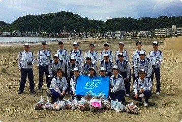 As part of our new employee training activities, since 2010 we have volunteered in cleanup activities mainly on beaches in Kanagawa Prefecture. By collecting discarded fishing equipment, plastic, empty cans, and other trash scattered along Yuigahama Beach in Kamakura and Katase Higashihama Beach in Fujisawa, we are working to enhance awareness of and tackle environmental issues such as marine litter.